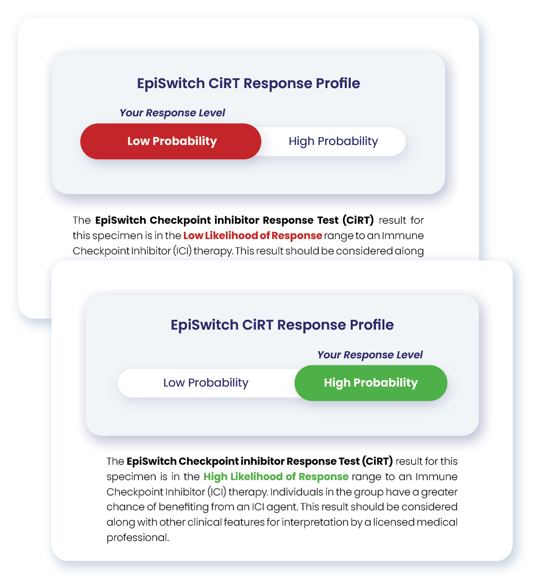 The EpiSwitch CiRT report includes indications for a healthcare professional to interpret a patient's likelihood of response to ICI therapy and formulate an effective management plan.